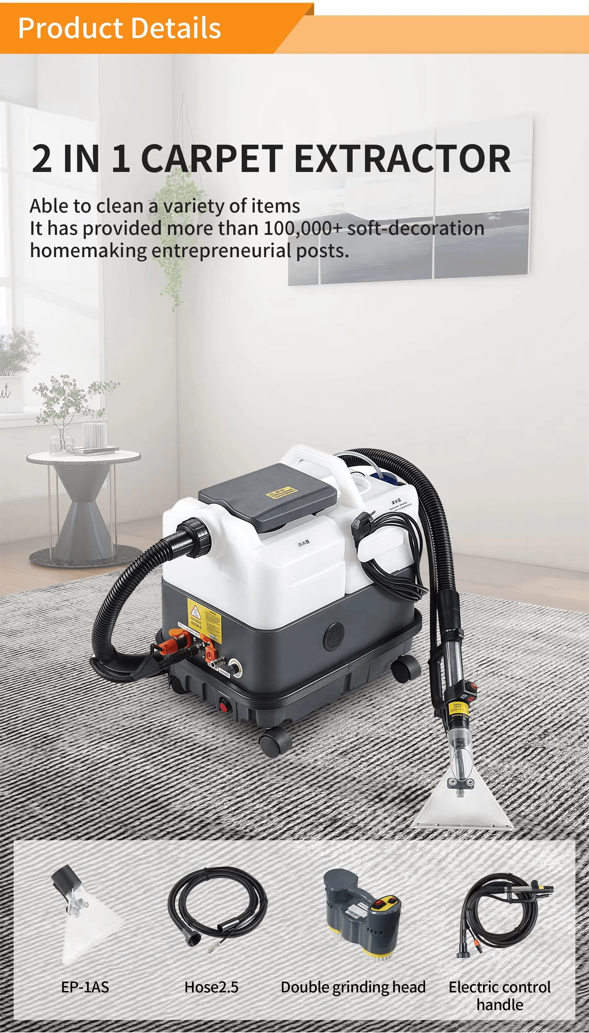 Foam pump power | 25W | Speed of Dual-Brush cleaner | 870rpm | Hose Length of Dual-Brush cleaner | 5M |