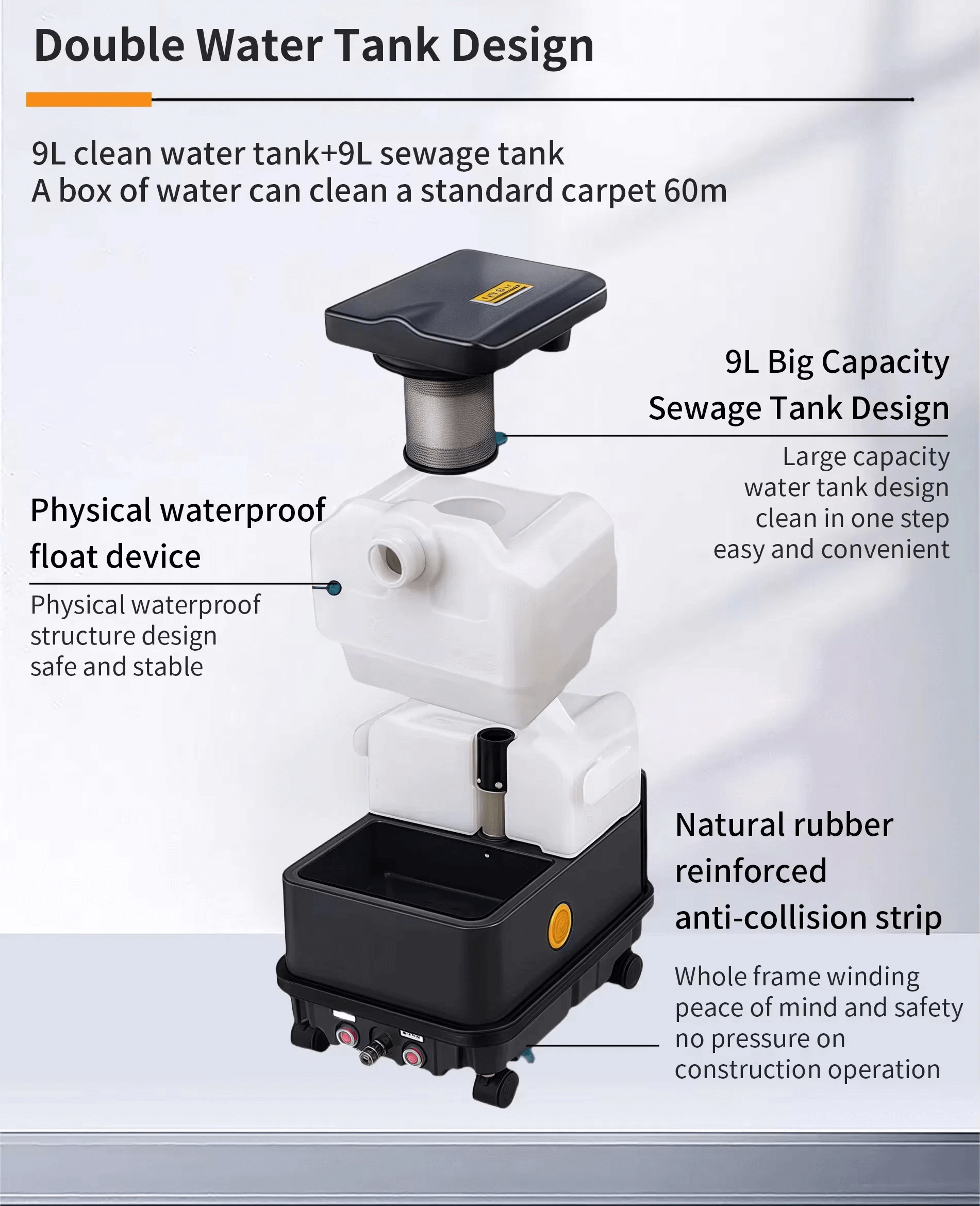 Fresh water tank | 9L | Recovery tank | 9L | detergent tank | 5L |
