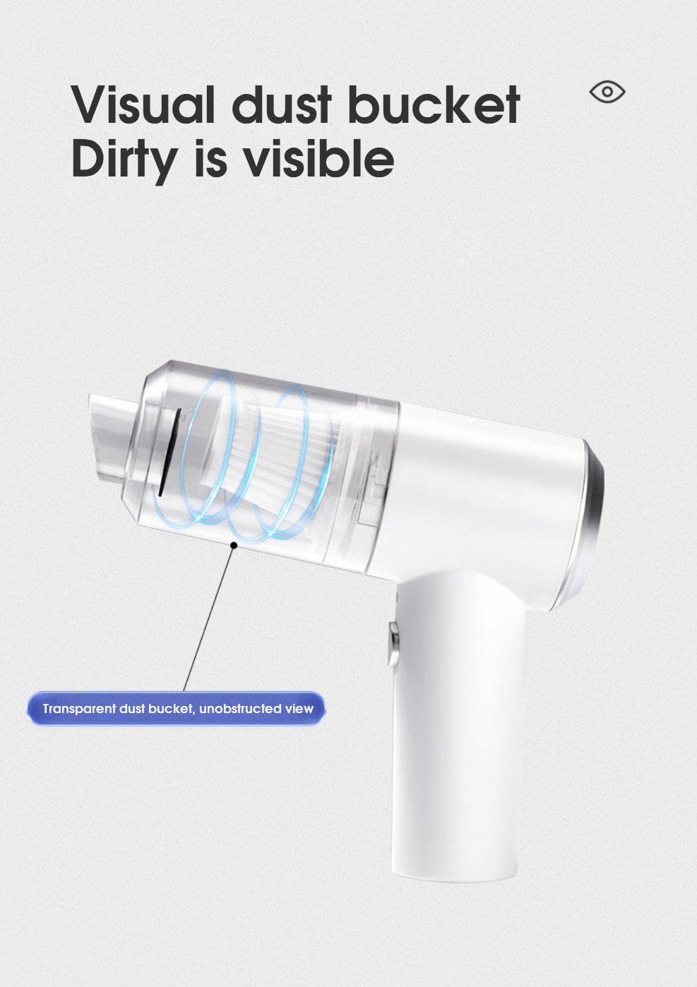 The small handheld vacuum cleaner helps you clean the seams of the sofa, the corners of the stairs, the cracks in cars and other hard-to-reach places, whether at home or in your vehicle.