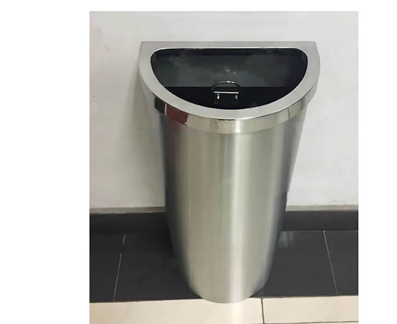 InquirySW-51O Wall Corner Half Round Stainless Steel Trash Can Bin Waste Flat Sided Indoor Half Moon Waste Bin Semi Round Trash Bin Can
